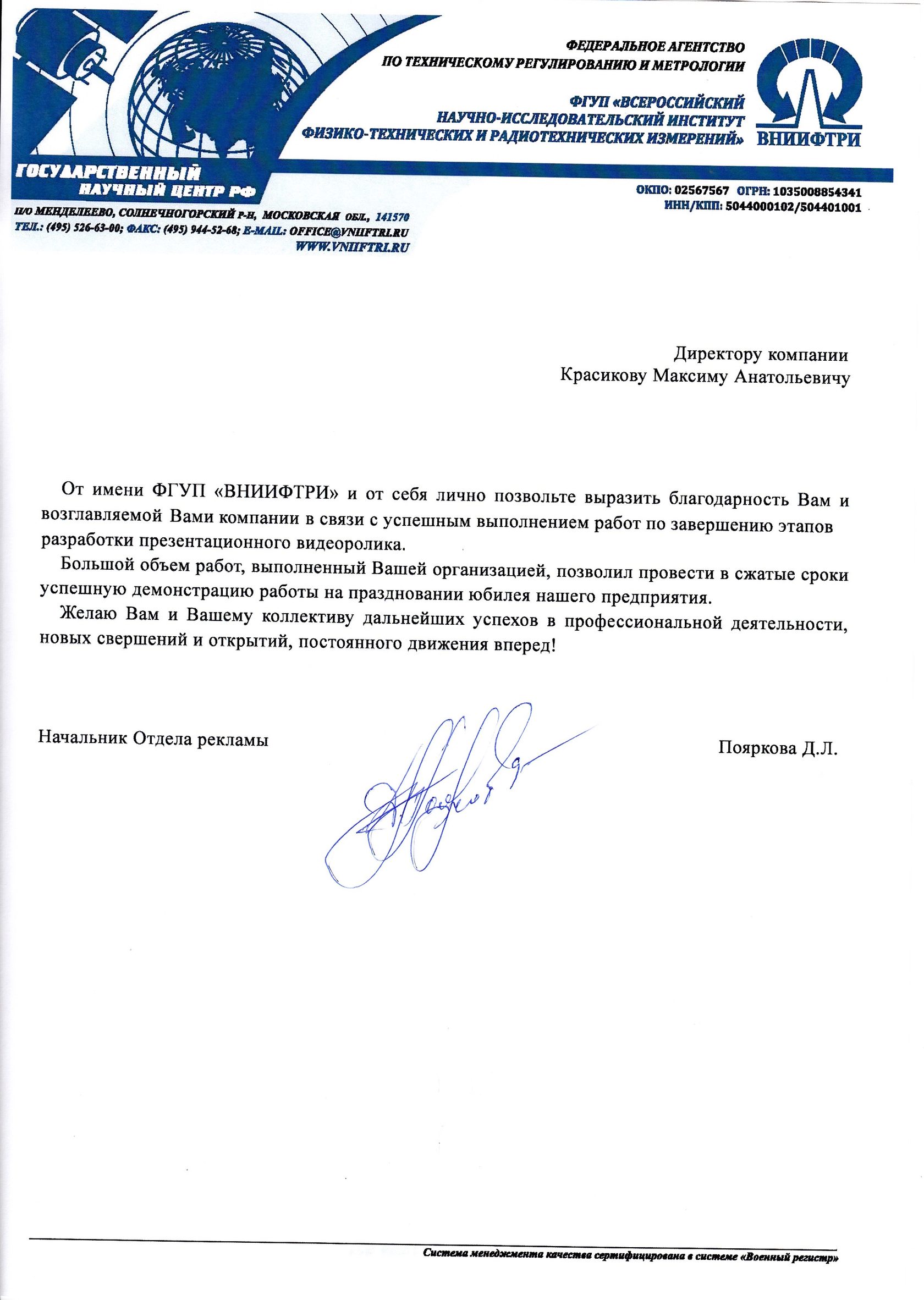 Большой объем работ, выполненный Вашей организацией, позволил провести в сжатые сроки успешную демонстрацию работы на праздновании юбилея нашего предприятия.